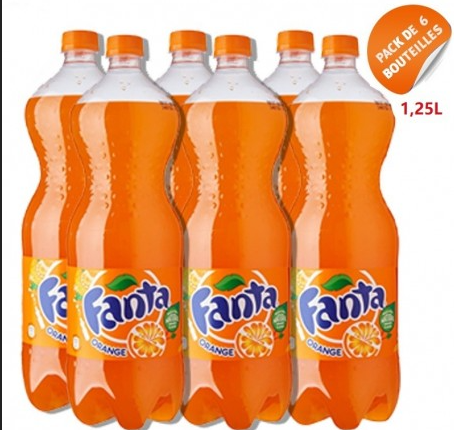 Ce pack est constitué de six bouteilles de fanta orange en plastique,